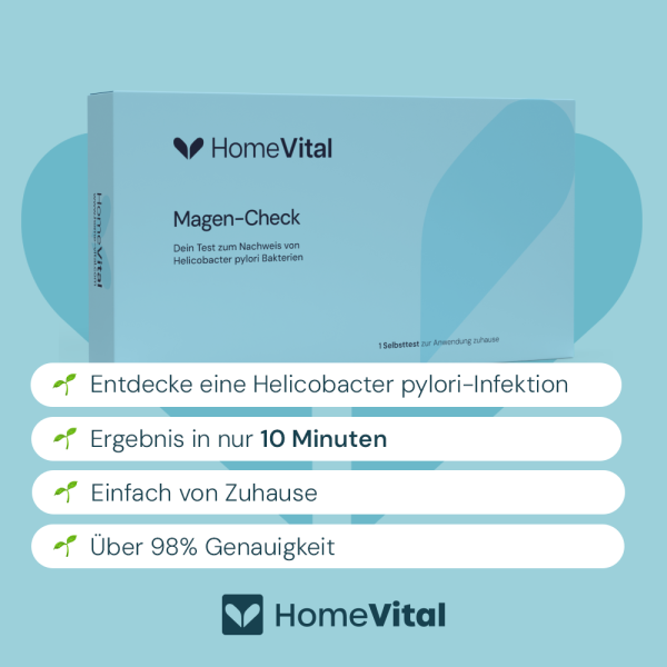 Hinweis: Der HomeVital Magen-Check dient zur Selbstüberwachung und ersetzt nicht die professionelle Beratung durch einen Arzt. Bei Unsicherheiten oder weiteren Fragen empfehlen wir dir medizinischen Rat einzuholen. Die relevanten Sicherheits- sowie Herstellerinformationen befinden sich in der bereitgestellten Gebrauchsanweisung.