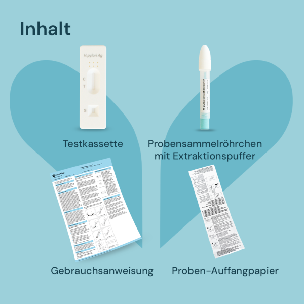 Helicobacter pylori ist eine Bakterienart, die häufig im Magen vorkommt und in Verbindung mit verschiedenen Magenerkrankungen steht. Die Prävalenz von Helicobacter pylori-Infektionen variiert weltweit. Schätzungen zufolge sind etwa die Hälfte der Weltbevölkerung mit Helicobacter pylori infiziert. Das Bakterium wurde mit Magengeschwüren, chronischer Gastritis und sogar mit einem erhöhten Risiko für Magenkrebs in Verbindung gebracht. Es ist wichtig zu beachten, dass sich nicht bei allen mit Helicobacter pylori infizierten Personen Symptome oder Krankheiten entwickeln. Einige Menschen bleiben ihr ganzes Leben lang asymptomatisch, während andere Magenprobleme entwickeln können. Die Identifizierung und Behandlung einer Infektion ist daher entscheidend, um Magengesundheitsprobleme zu verhindern oder zu behandeln, um langfristige Komplikationen zu minimieren. Unser Helicobacter Pylori Test schafft Klarheit.